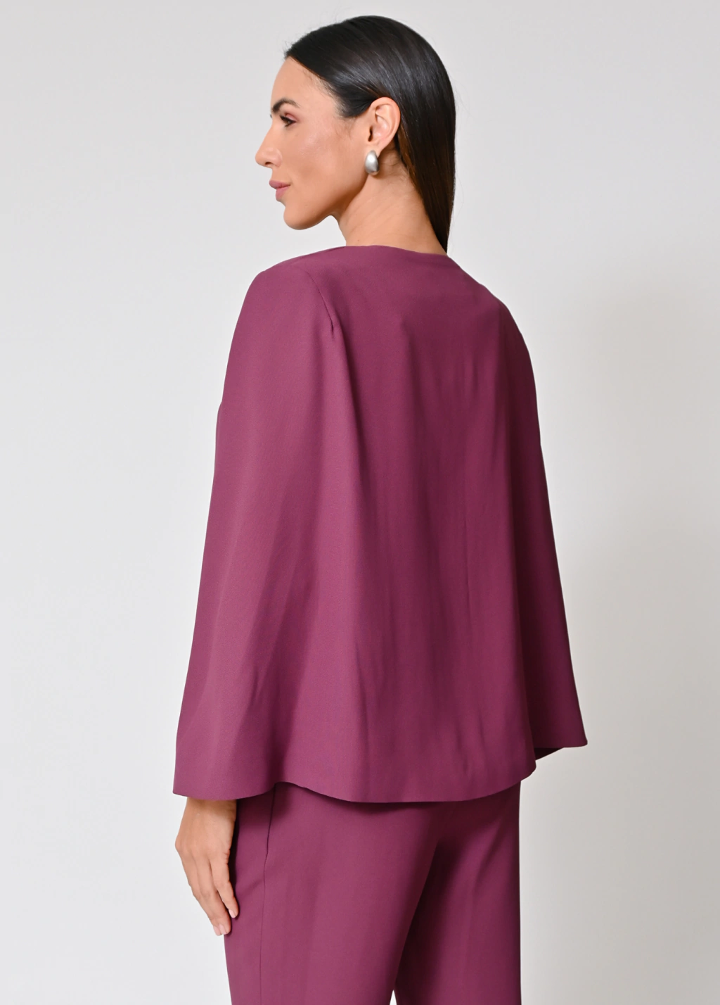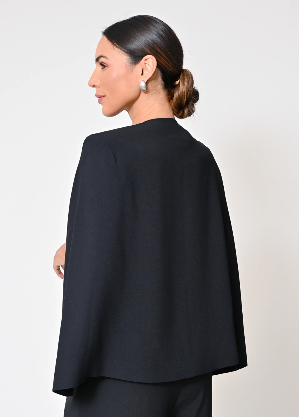 Blazer em crepe nobre (crepe Patou), estilo capa, sem mangas.