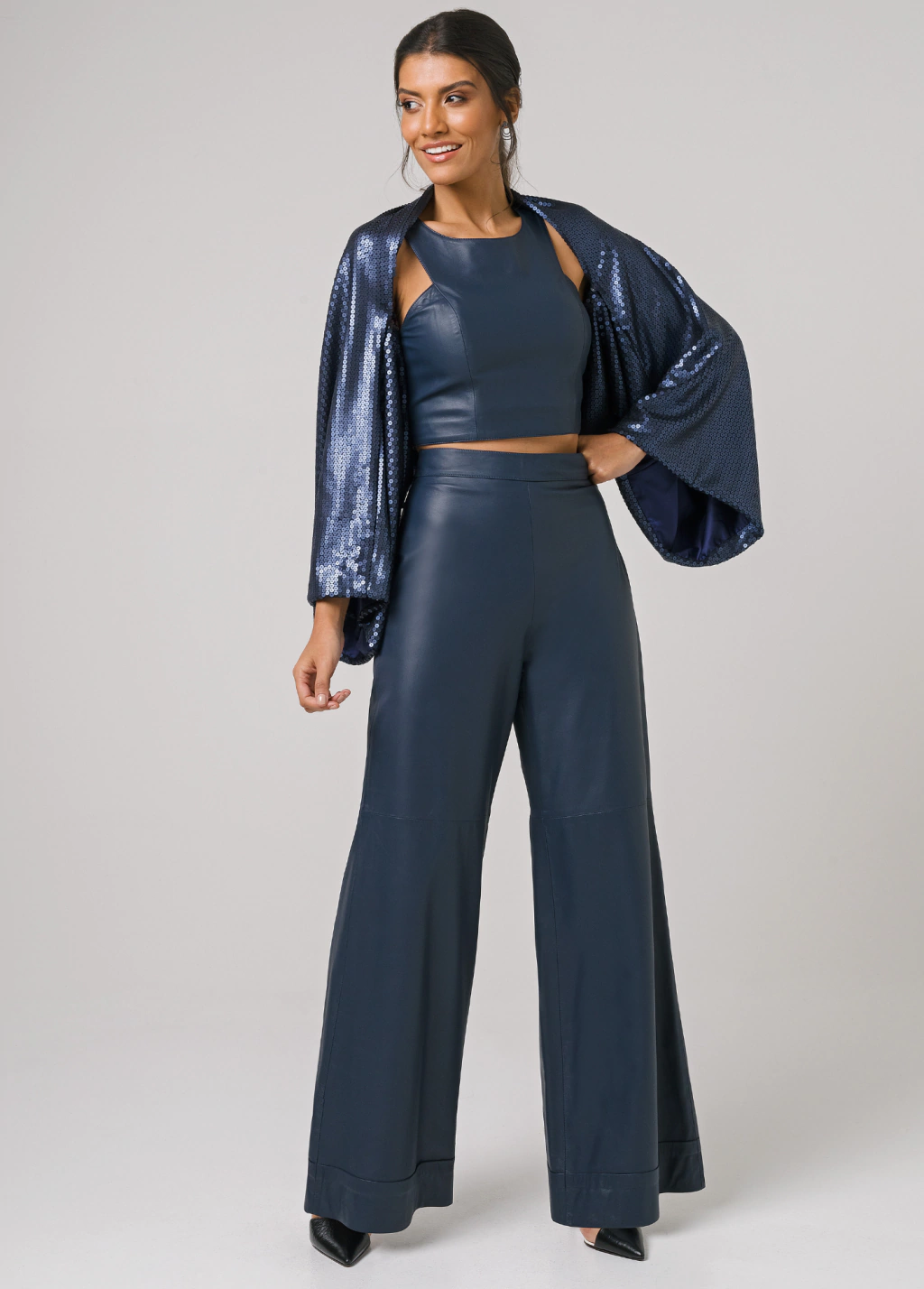 Se você gostou da Calça Pantalona em Couro Inès, mas não tem disponível na sua numeração ou na cor que deseja, podemos produzir para você!