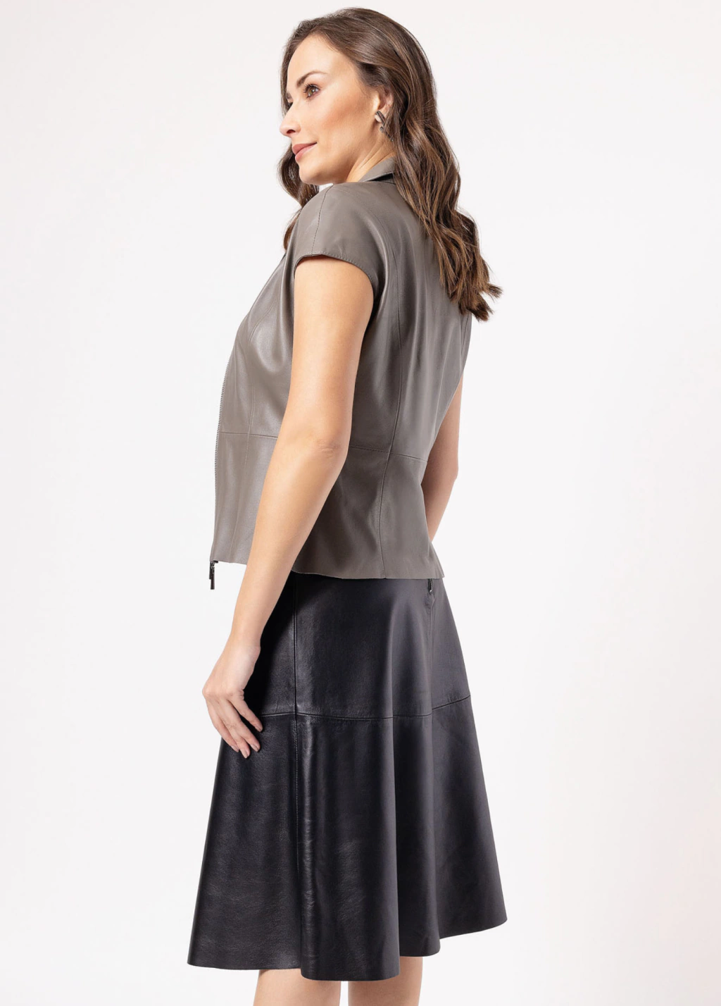 Saia 100% em couro (pelica), com forro em cetim com toque de seda para proporcionar muito conforto.