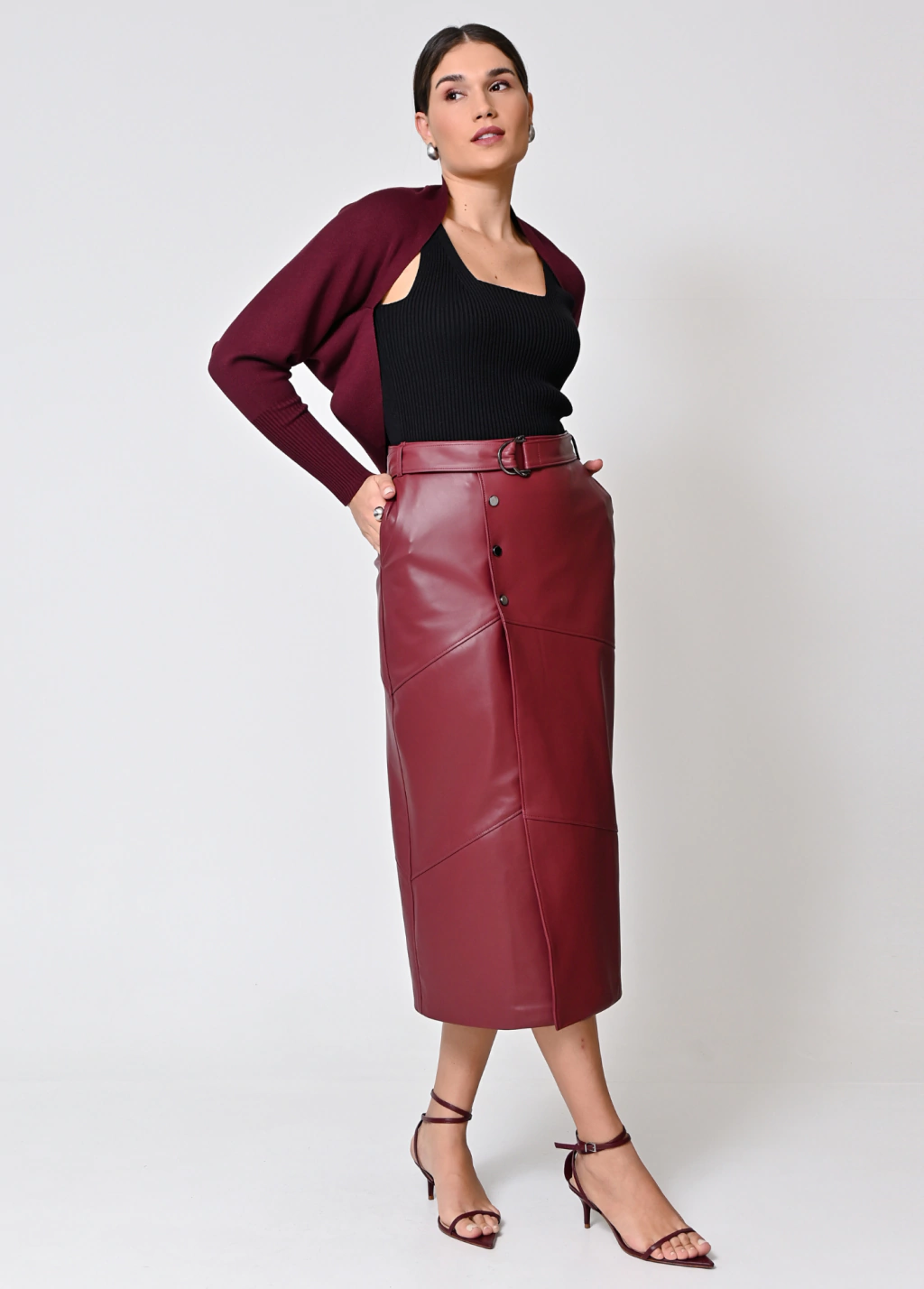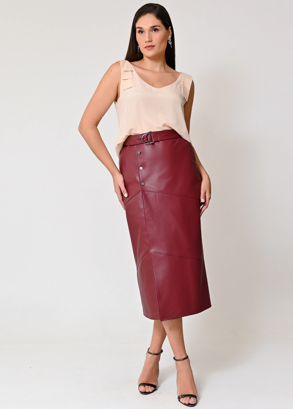 Em couro legítimo, possui recortes diagonais, alongando a silhueta. Com forro em cetim com toque de seda.