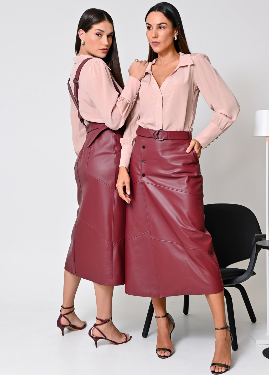 Uma salopete diferenciada, que possui alças ajustáveis que podem ser retiradas, transformando-se em uma saia incrível.
