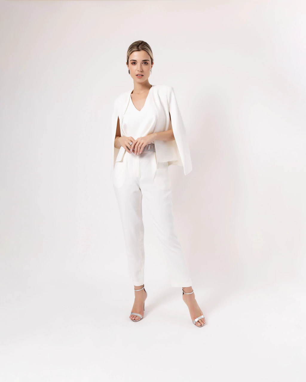 Se adicionar o Blazer Capa Astrid, forma um terno elegantíssimo e diferenciado, coordenado com o top.